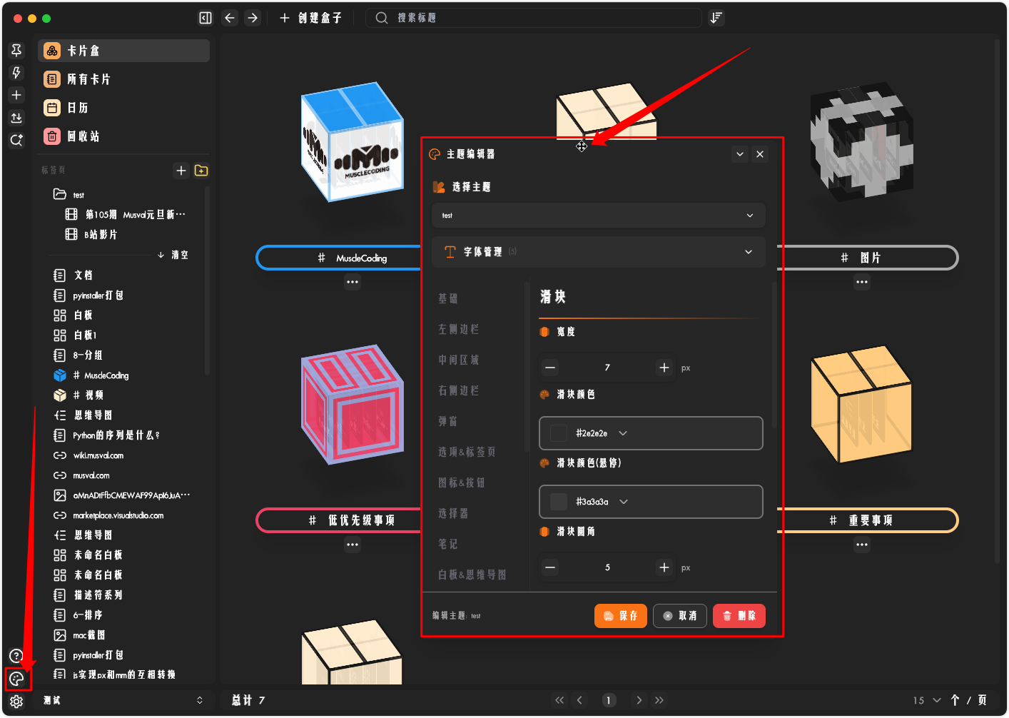 自定义主题编辑器是浮窗形式,可拖拽位置,可拉伸调整大小,可折叠/展开。